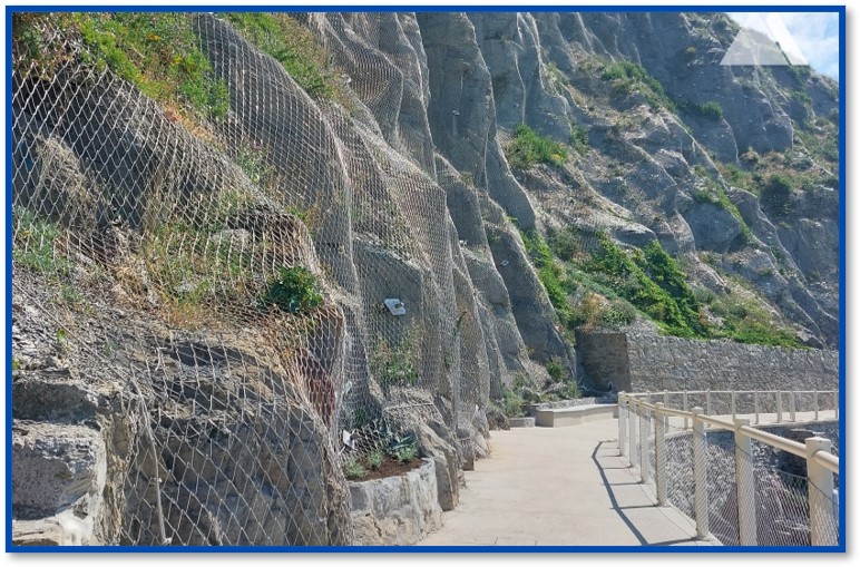 Jaring TECCO G65/4 INOX, blok batu pada jalan setapak di Via dell’Amore , Italia